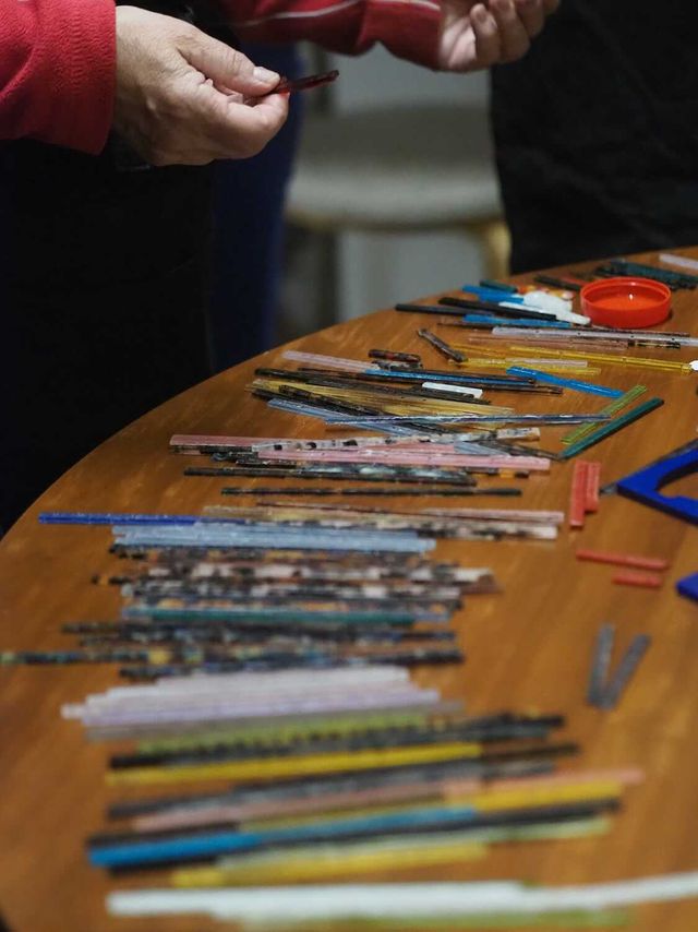 All of the gorgeous selection of acetate is donated waste material from spectacle maker Cubitts*.